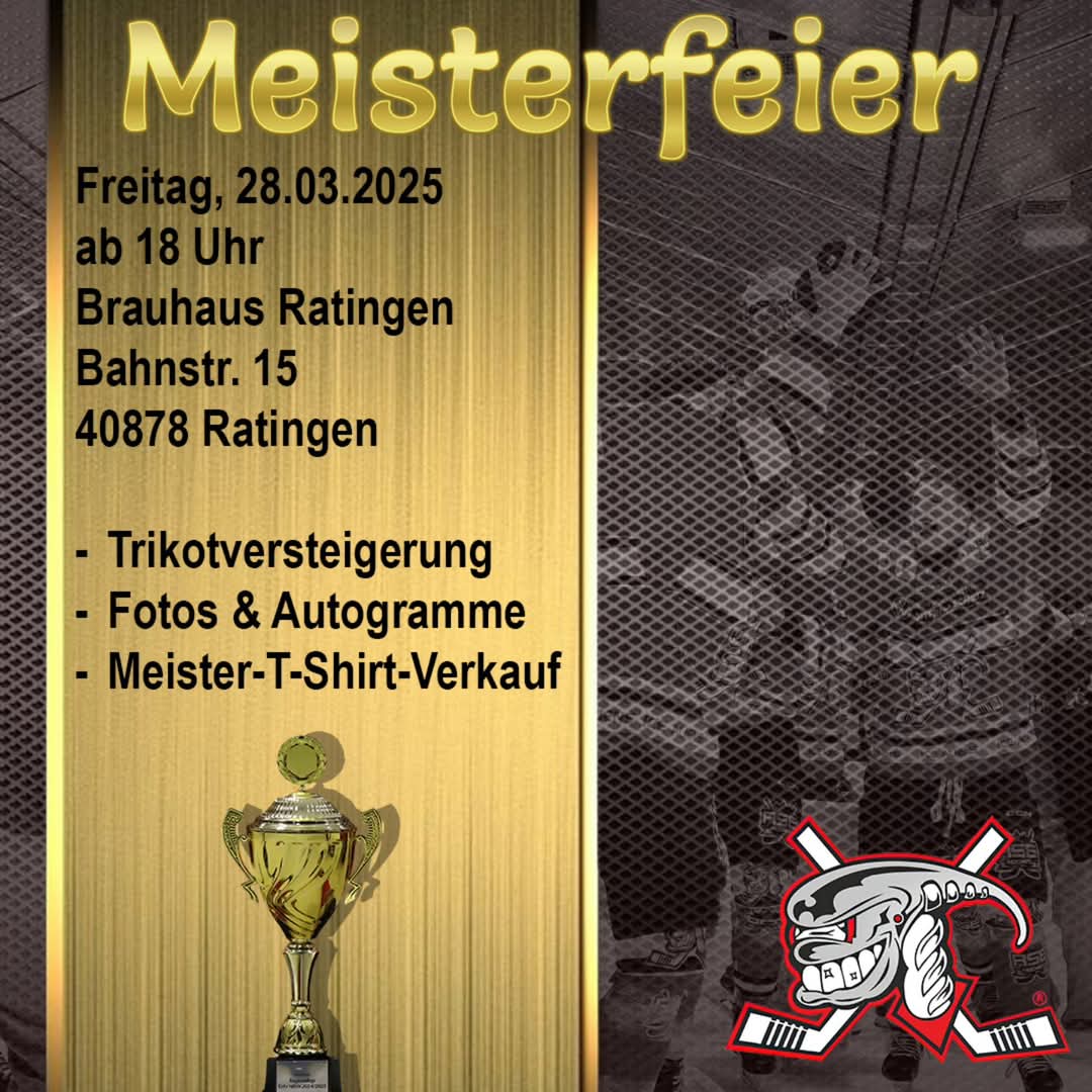 Dieser findet im Ratinger Brauhaus, Bahnstr. 15, 40878 Ratingen statt. Dort werden wir einige Trikots der Meistermannschaft versteigern, es können Meistershirts käuflich erworben werden und die Jungs stehen natürlich für Autogramme und Fotos zur Verfügung.