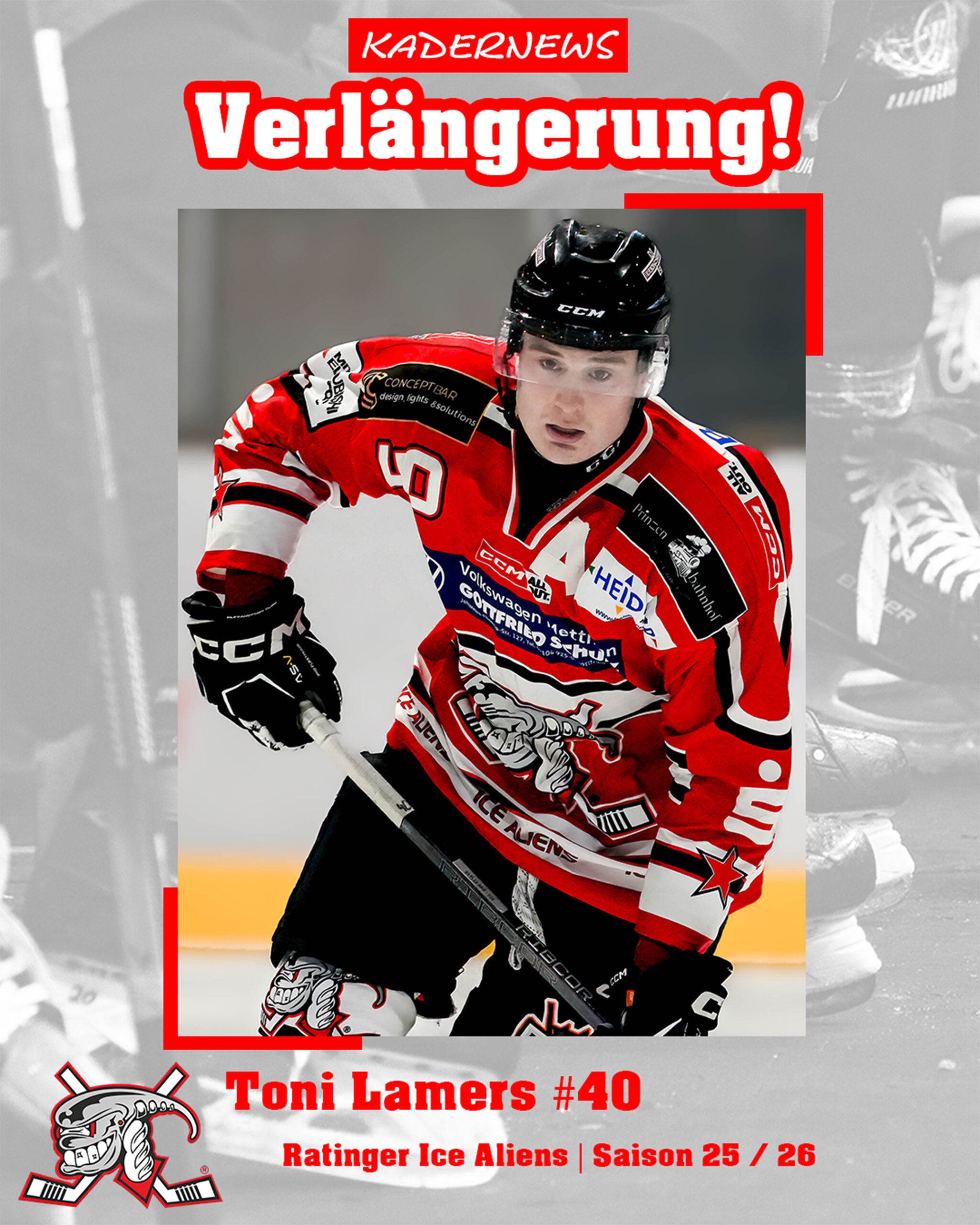 Die erste Weiterverpflichtung des Meisterkaders ist Toni Lamers. Mit dem 24-jährigen gebürtigen Essener Mittelstürmer bleibt einer der zentralen Spieler der vergangenen Saison auch in der kommenden Spielzeit ein Ice Alien. Toni gelangen in 31 Spielen 15 Tore und 37 Vorlagen (52 Punkte), er erhielt 33 Strafminuten. Das 1,86 m große und 87 kg schwere Kraftpaket hat in der letzten Spielzeit einen weiteren Schritt nach vorne gemacht. Diese Entwicklung will Toni nun weiter vorantreiben, deswegen war ihm der Verbleib in Ratingen auch eine Herzensangelegenheit.